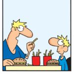 T.G.I.F !! Another Friday is here, and another long-awaited Cartoon Friday follows! I’ve decided to link up my Idioms of the Week post again and make these cartoons all about FOOD. In the comments section, I would love to hear about your favorite cartoons, questions about them and a desire for explanations, and I would also love to know where you plan on eating this week! Will you eat at home, or go out someplace new? I can’t wait to hear. Also notice that most pictures have a caption, with a question that you can respond to in the comment section. Happy studying and of course, eating! <3