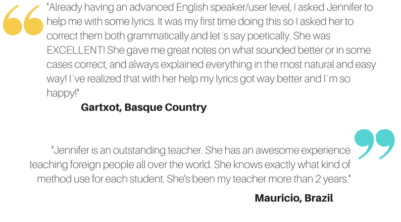 “I am too nervous speaking in front of another person or with a native speaker.”• With a private online class with me, you don’t have anyone else to worry about. I will provide a comfortable and safe learning environment encouraging you to use any mistakes to your advantage and learn from them. Yes, I am a native speaker, but one that can help you learn!