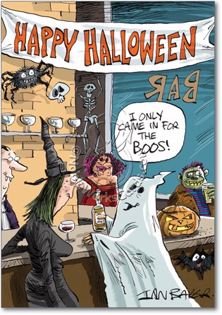 2. this is a word pun: Ghosts say “BOOO” [plural: Boos] || In a bar, people drink BOOZE : Booze [informal noun]: alcohol