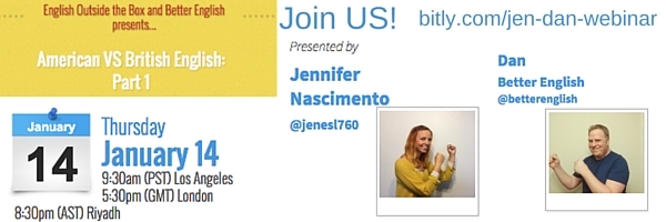 Learn about the similarities between American and British English, while hearing 2 native English speakers have a natural conversation. Learn new expressions, improve your listening skills and ask questions in a LIVE Q&A (questions and answer session). Register here: bitly.com/jen-dan-webinar