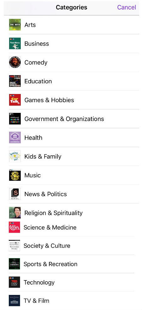 There are many different types of Podcasts, in fact check out the many different categories available in the iTunes store. You can search not only by category, but also by the top charts or by name or keywords.