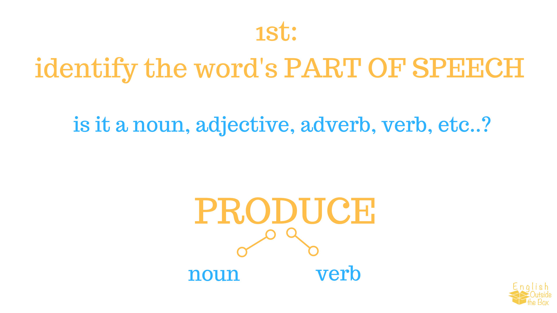 Using different accents and stress will help indicate what part of speech this word is (part of speech =, noun, verb, adjective, adverb, etc..).